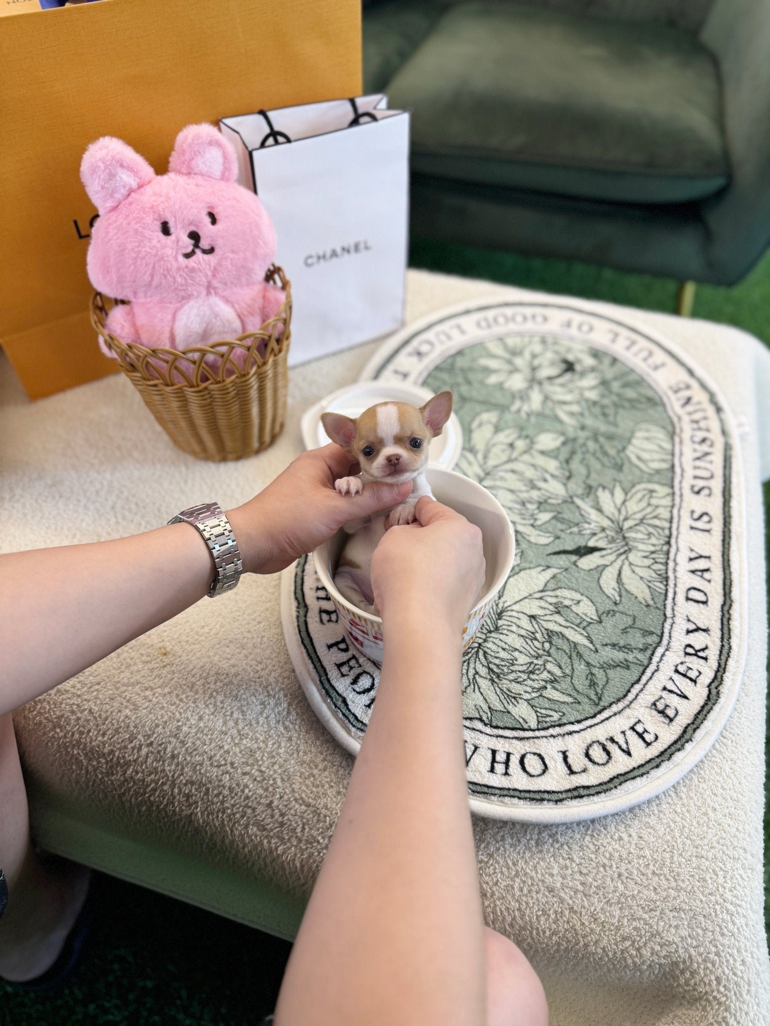 Lily is not only adorable but also quite easy to care for. This teacup Chihuahua loves gentle affection, whether it’s cuddle time on the couch or relaxing strolls around the neighborhood. She has modest exercise needs, making her a great companion for those with a busy lifestyle. Regular grooming and health check-ups will keep Lily in excellent condition, ensuring she remains a happy and healthy member of your family for years to come.