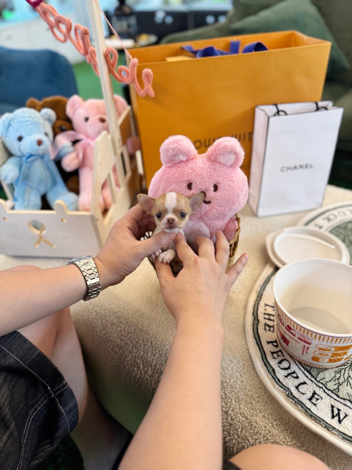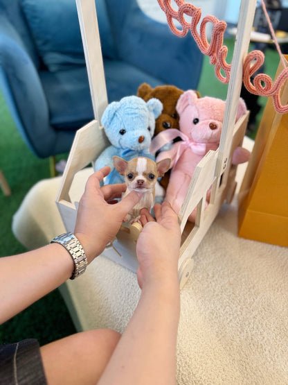 Lily is an adorable teacup Chihuahua with a heart full of love and energy. Known for her social butterfly nature, Lily adores attention and thrives on human interaction. Her tail wagging and warm greetings make her a welcoming presence in any home. Whether it’s meeting new guests or spending quality time with her family, Lily radiates happiness and charm in everything she does.