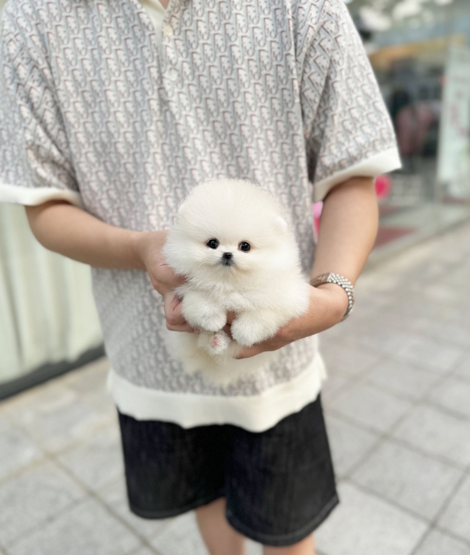 Loulou is a one-of-a-kind Pomeranian teacup puppy who will instantly steal your heart. With her soft and affectionate nature, she brings warmth and comfort into every household she joins. Her light cream coat and delicate size make her not only a visual delight but also a symbol of elegance. Whether she’s snuggling up for a nap or resting in your arms, Loulou is the epitome of gentle companionship.