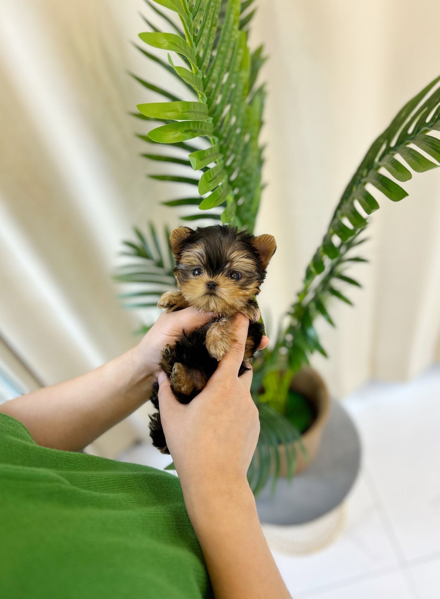 As a Leo Teacup Yorkshire Terrier Puppy, he embodies a delightful blend of charm and playfulness, making him an ideal companion for families and individuals alike. With a spirited demeanor that brings joy to any environment, Leo thrives in social settings and enjoys engaging with people of all ages. His minimal grooming needs and affectionate nature make him an excellent choice for those seeking a loyal and loving pet. Embrace the opportunity to welcome Leo into your home and experience the joy he brings.